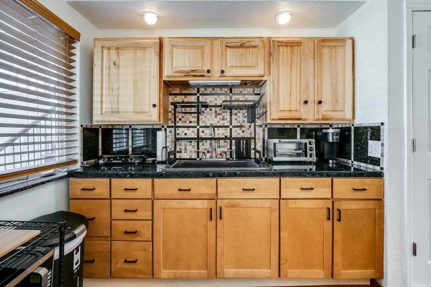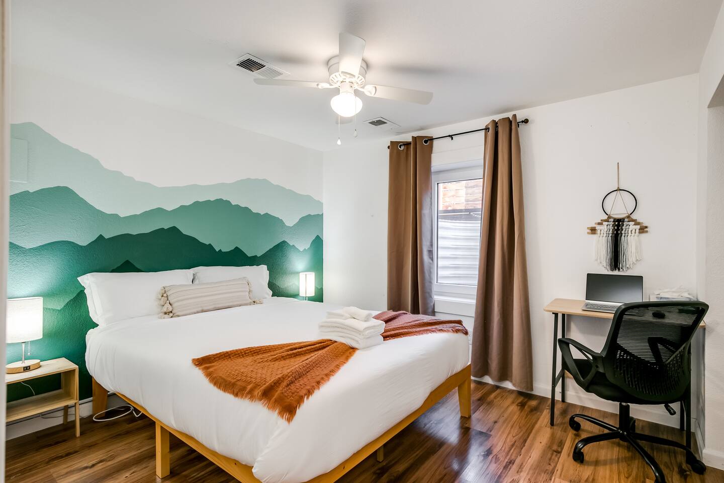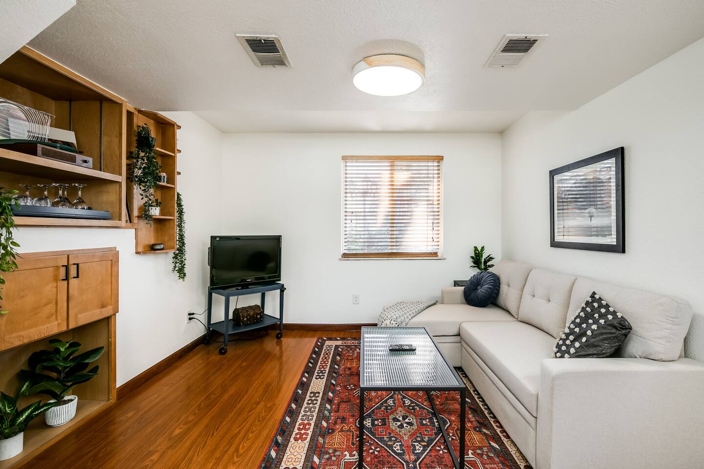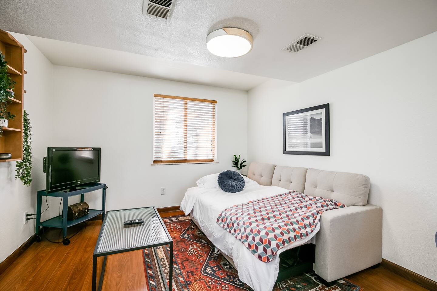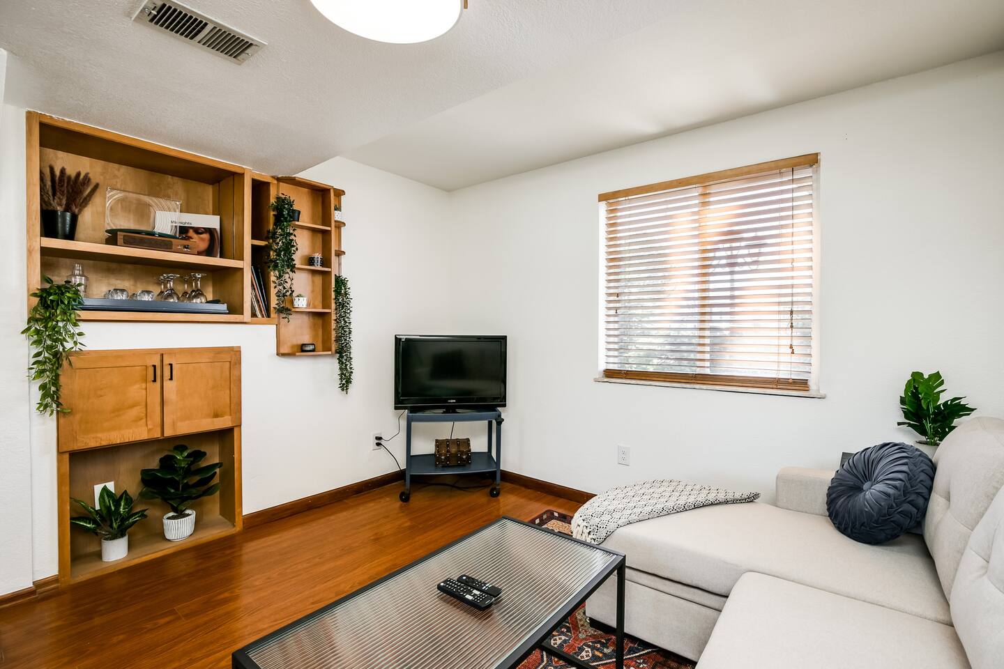 This guest suite is in the basement/garden level of a home with an adjacent unit behind a wall and door. While we’ve done our best to minimize sound transfer as much as possible, you may still hear some footsteps and muffled conversation. BEDROOM The bedroom contains a queen memory foam mattress sitting beneath a mountain mural. The bedroom also contains a desk and chair for convenient working from home on our high-speed Wi-Fi. This space is definitely a relaxing retreat! BATHROOM The bathroom contains a gorgeous custom shower outfitted with free shampoo, body wash, and conditioner. LIVING ROOM The living room is outfitted with a couch that converts into a sofa bed, 32" TV, and record player with vinyl records. There is also a bar with all you could need to enjoy a bottle of wine or other beverage after a long day of exploring Colorado. If you have a third guest, the pull-out sofa bed is available for them and we have worked to make it as comfy as possible! DINING AREA There is a four-person dining table with room for everyone to sit and enjoy a home cooked meal from our stocked kitchenette. KITCHENETTE Contains all the cooking appliances you could need other than a full oven - hot plate burners, a toaster oven, coffee maker w/ free coffee, microwave, electric kettle, apartment-sized refrigerator and all the supplies you could need to cook on an extended stay. BACKYARD / PATIO This space is shared but we give preference to our guests to use it. The covered patio makes for a great place to unwind and watch the sunset over the mountains (when the blooming trees don't block the view) OTHER The home contains one thermostat which you will unfortunately be unable to access. However, we keep the home between 69 and 72 degrees dependent on season. We have provided heaters and fans for you to further tweak the temperature to your liking. You are also welcome to reach out to us and we will be happy to adjust the temperature for you on demand! This guest suite is in the basement of a home with an adjacent unit behind a wall and door. While we’ve done our best to minimize sound transfer as much as possible, you may still hear some footsteps and muffled conversation. There is a small 20lb dog on the property named Woody. He is friendly to new people but may give you a couple welcome barks when you enter. We are more than happy to introduce you to him upon request!